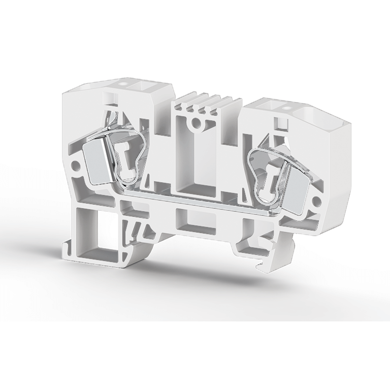 10mm2, Yay bağlantılı, 1 giriş 1 çıkış geçiş klemensi, Yalıtım malzemesi PA, Beyaz