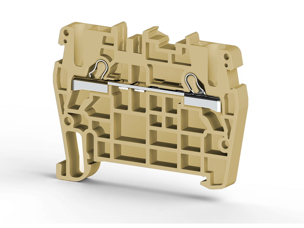 2,5mm2, Pratik Yay bağlantılı, 1 giriş 1 çıkış geçiş klemensi, Yalıtım malzemesi PA, Bej