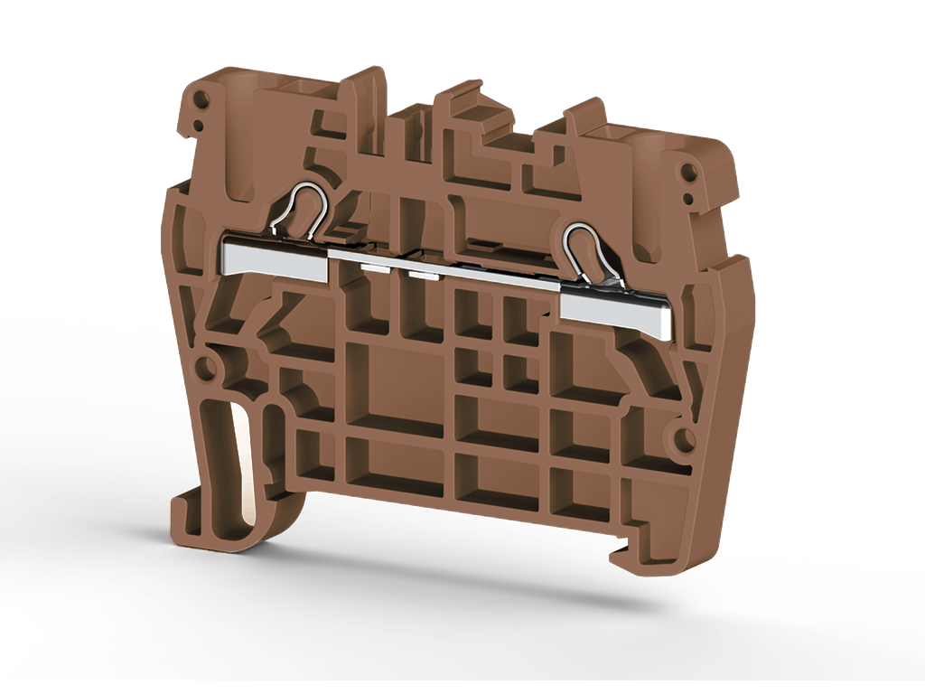 2,5mm2, Pratik Yay bağlantılı, 1 giriş 1 çıkış geçiş klemensi, Yalıtım malzemesi PA, Kahverengi