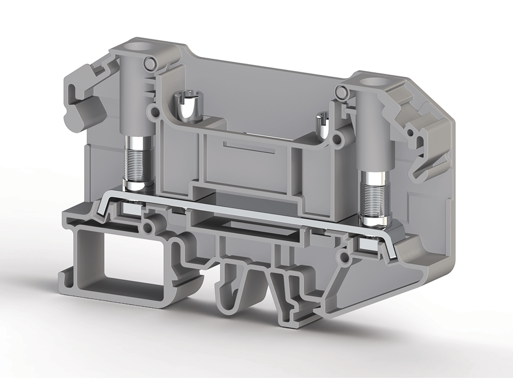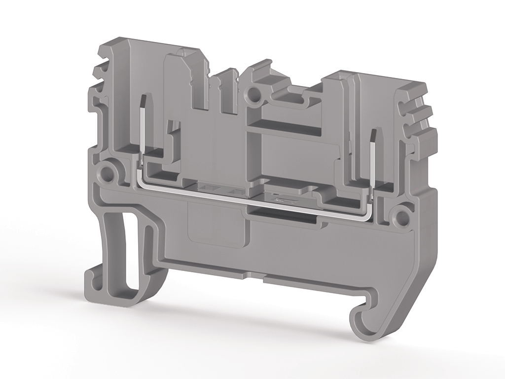 6mm2, Papuç bağlantılı, saplamalı, çift kovanlı, ölçme ayırma klemensi, Yalıtım malzemesi PA, Gri