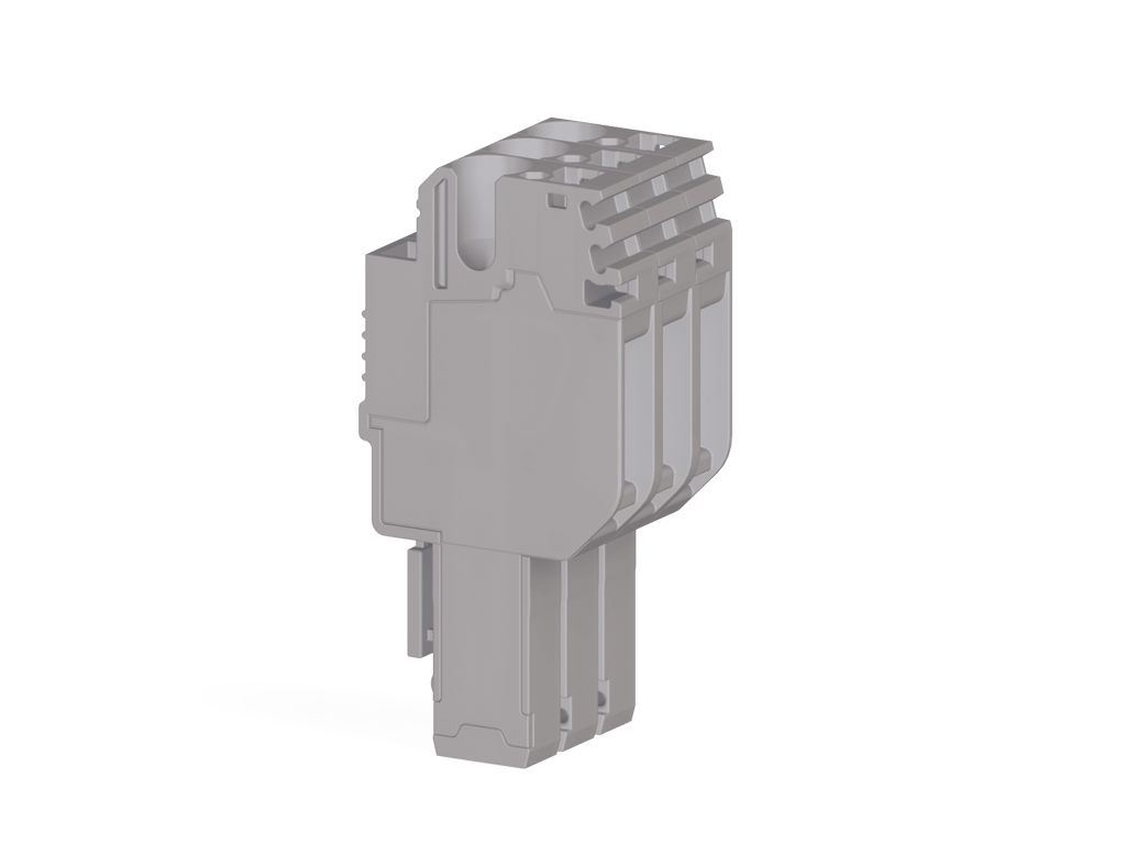 2,5mm2, İğne bağlantılı, 4 girişli üst köprü yuvalı erkek soket, Yalıtım malzemesi PA, Gri