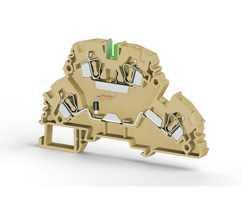 4mm2, Yay bağlantılı, 24V DC 2 katlı 1 giriş 1 çıkış ledli klemens, Yalıtım malzemesi PA, Bej