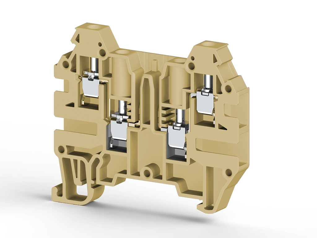 4 mm2, Vida Bağlantılı, Tek katlı 2 giriş 2 çıkış ayırma klemensi, Yalıtım malzemesi PA, Bej