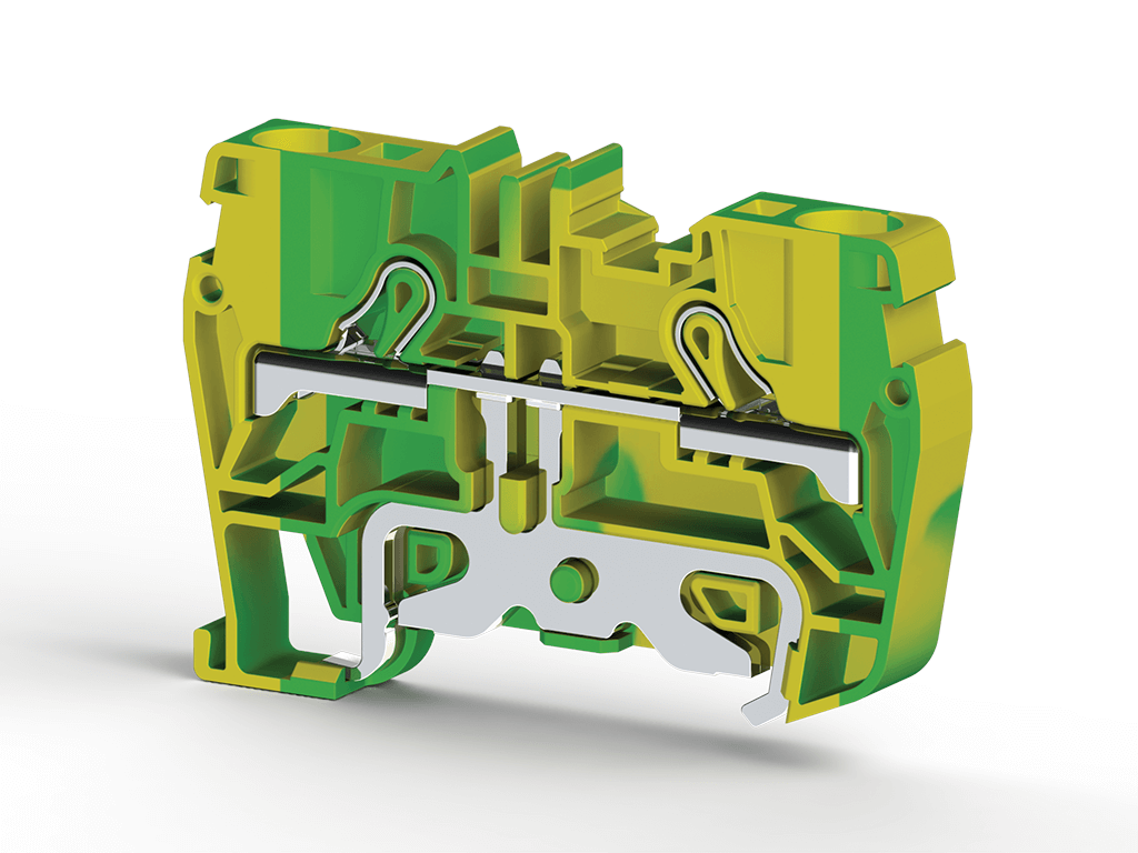2,5mm2, Pratik Yay bağlantılı, 4 iletkenli topraklama klemensi, Yalıtım malzemesi PA, Sarı-Yeşil