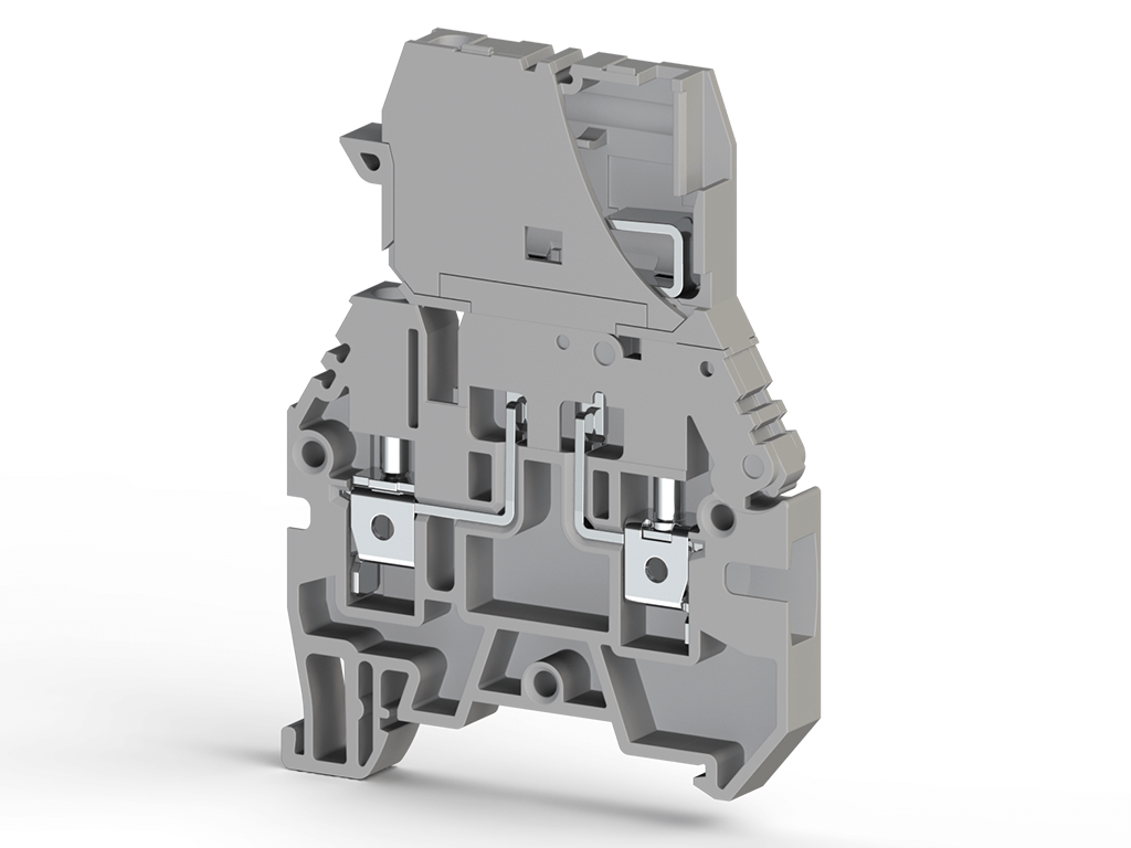 4mm2, Vida bağlantılı, Ayırma kollu sigortalı klemens(5x20-25), Yalıtım malzemesi PA, Gri