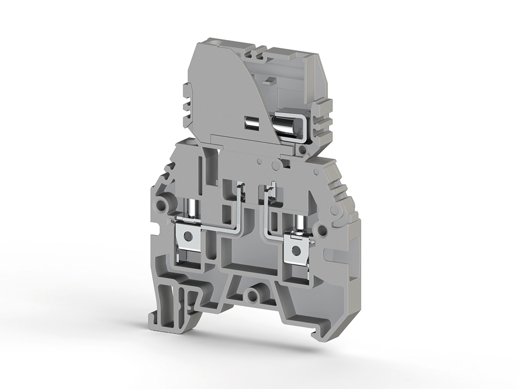 2,5mm2, Yay bağlantılı, 1 giriş 1 çıkış soketli klemens, Yalıtım malzemesi PA, Gri