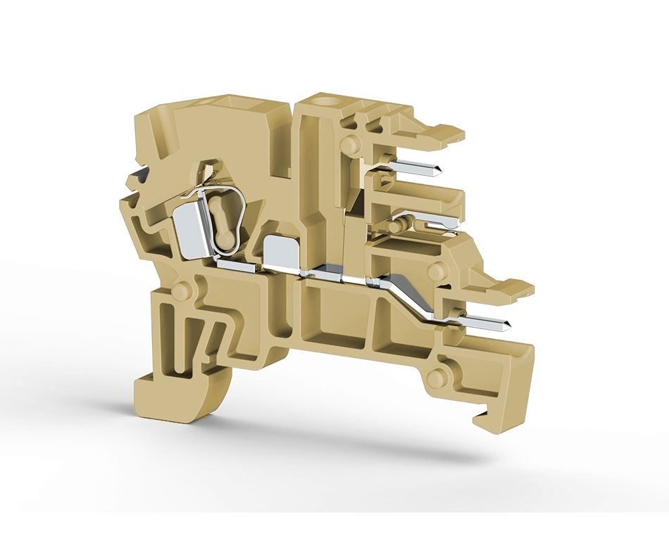 2,5mm2, Yay bağlantılı, 1 giriş 1 çıkış soketli klemens, Yalıtım malzemesi PA, Bej