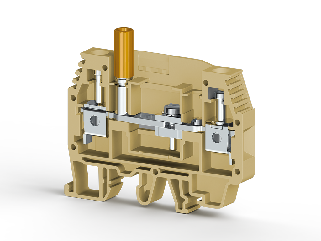 6mm2, Vida bağlantılı, tek kovanlı ölçme ayırma klemensi, Yalıtım malzemesi PA, Bej