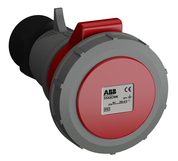 332BU6 Panele monte giriş, topraklama manşonu konumu 6h, nominal akım 32A, IP44 sıçrama korumalı, birleşik flanş, düz, 3 kutuplu + toprak, frekans 50-60 Hz, renk kodu Kırmızı